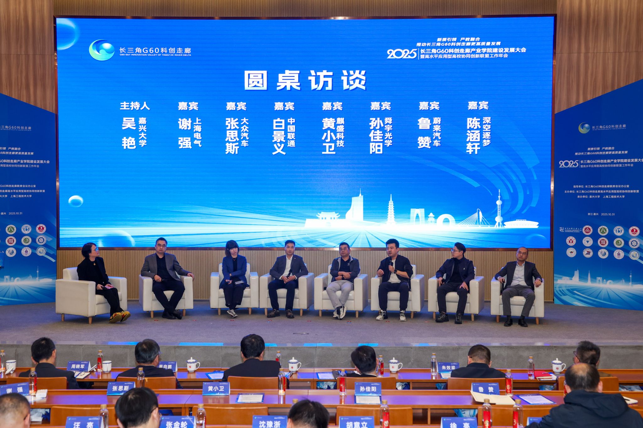 10月31日下午,以“新质引领、产教融合,推动长三角G60科创走廊更高质量发展”为主题的2025年长三角G60科创走廊产业学院建设与发展大会暨高水平应用型高校协同创新联盟年会在嘉兴大学举行。G60联席办主任、松江区委常委、副区长刘福升,嘉兴市政府副秘书长金球,嘉兴大学校长梅德庆,合肥大学校长任永,上海工程技术大学副校长夏春明,宁波职业技术大学校长吴向鹏,宣城职业技术学院副院长蔡冠群,上海科创职业技术学院副校长汪崇德出席。嘉兴大学党委委员、副校长王立玮主持年会。