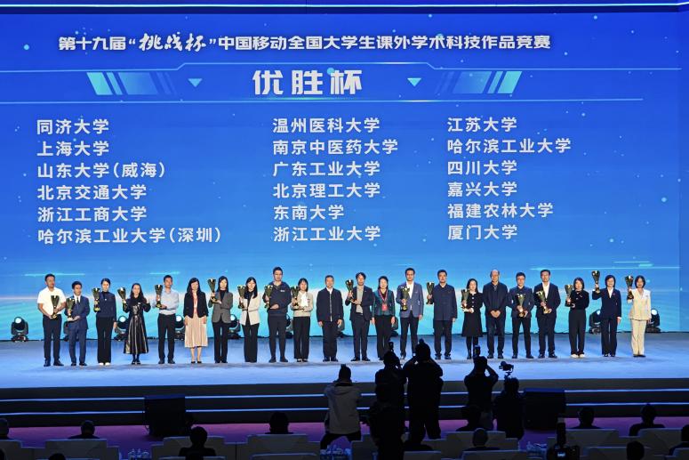 10月31日—11月3日,第十九届“挑战杯”全国大学生课外学术科技作品竞赛在南京举行。我校共斩获14项全国大奖,团体总分位列全国第33、浙江省第5,首次捧起全国“挑战杯”优胜杯,实现了学校自2019年以来连续四届成为全国“挑战杯”发起高校后的再突破!其中在主体赛中荣获全国一等奖2项、二等奖3项、三等奖1项,在专项赛中荣获特等奖3项、二等奖2项、三等奖3项。