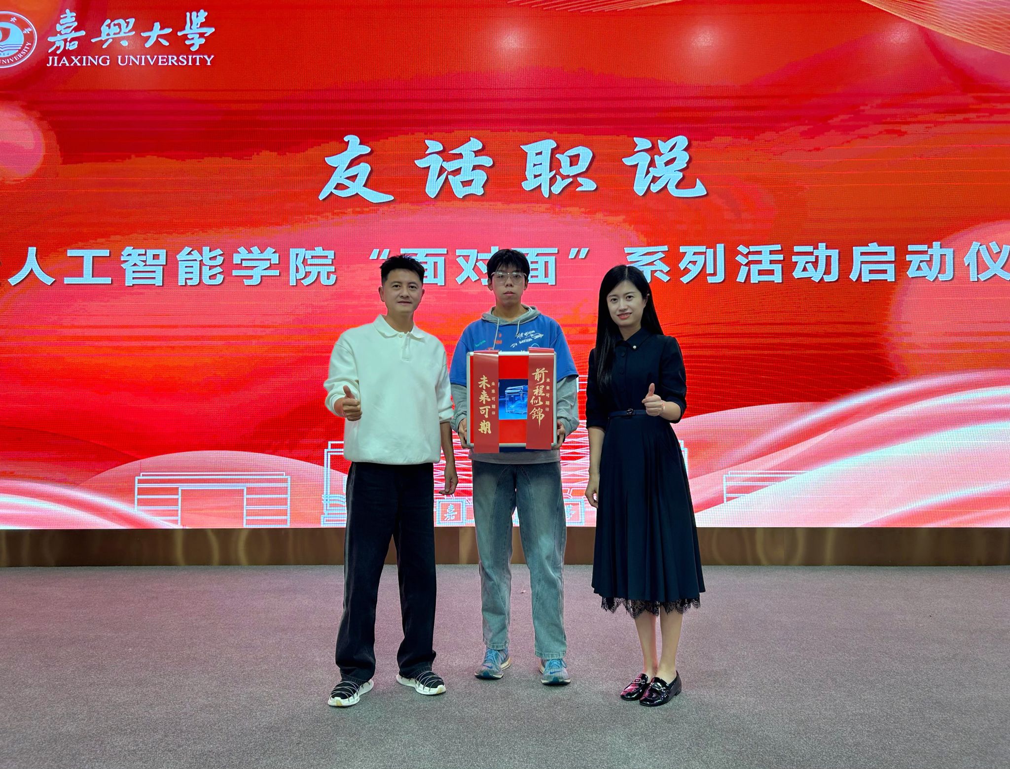 10月30日,人工智能学院举行“友话职说”活动暨学院“面对面”系列活动启动仪式。首期嘉宾、学院2001届优秀校友、嘉兴市卡妙科技有限公司CEO胡生明,学院党委书记周钰出席活动。