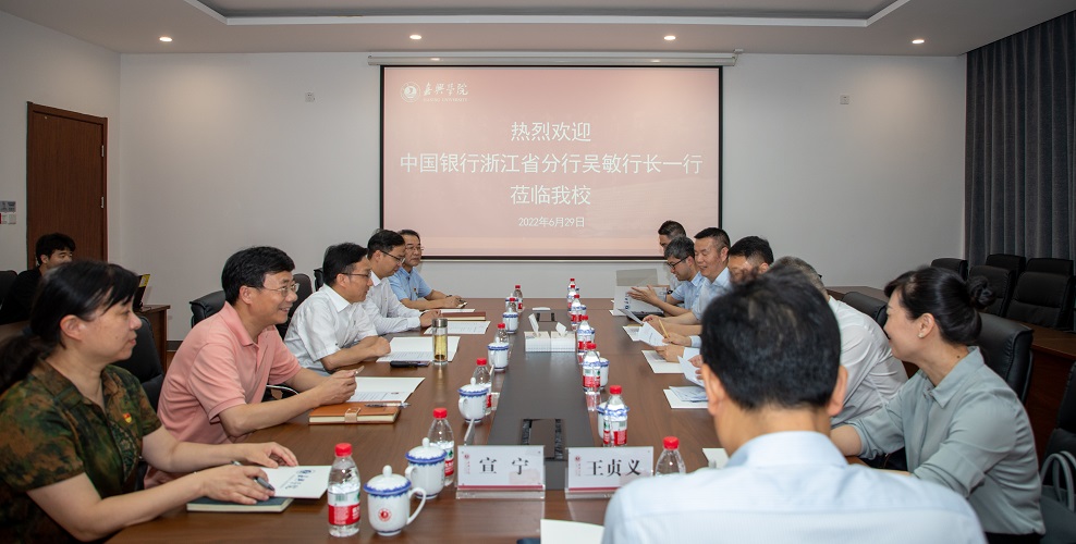 6月29日下午,中国银行股份有限公司浙江省分行党委书记、行长吴敏来校访问。校党委书记卢新波出席座谈会。