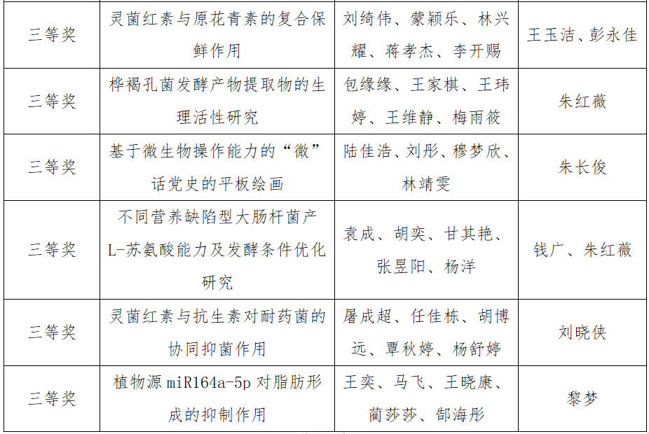 在学校和相关部门的大力支持下,生物与化学工程学院坚持“以赛促教、以赛促学、以赛促研、以赛促创”,充分发挥学院师资和科研优势,构建了全员、全过程、全方位的实践育人体系,促进学生成长成才。自去年9月赛事启动以来,学院广泛动员师生参赛,积极做好校赛组织工作,并为入围省决赛队伍创造良好条件和全力支持。指导教师对参赛学生进行了全过程、全方位精心指导,前期反复与参赛选手交流研讨,不断打磨参赛项目,力求精益求精做好学生参赛的指导工作。参赛学生克服疫情带来的不利影响,团队成员各尽所能、相互配合,积极开展实验设计和文献查询,充分做好参赛准备,最终在竞赛中获得佳绩。