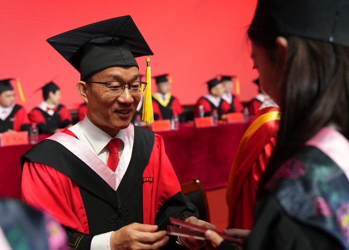 学位授予仪式上,陆军为获荣誉学士学位的2022届毕业生代表授予学士学位证书、荣誉学士学位证书并拨穗,为获学士学位的2022届毕业生代表授予学士学位证书并拨穗。张琦宣读学校2022届学士学位、荣誉学士学位授予决定。
