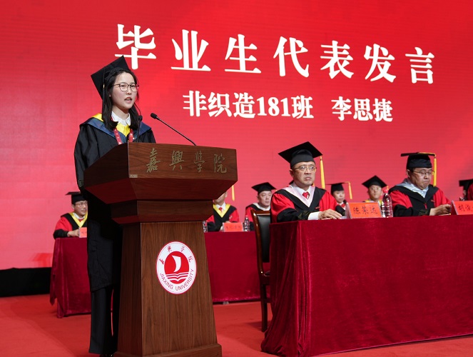 第十七届陈省身学生奖获得者、材料与纺织工程学院非织造材料与工程专业181班李思捷作为毕业生代表发言。