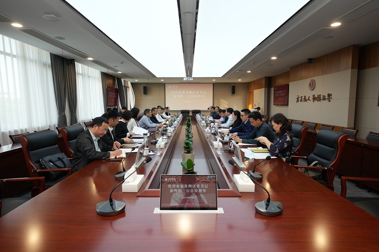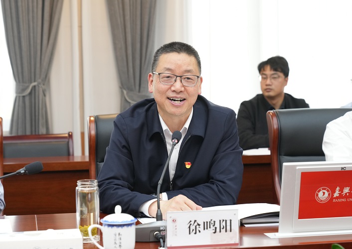 5月17日,秀洲区委书记徐鸣阳一行来校考察调研。秀洲区人大常委会主任王永法,区政协主席马雪腾,区委常委、组织部长谢春健,副区长张镁利,区委办、区委组织部、区教育体育局、区科技局、区卫健局及秀水新区建设指挥部相关负责人陪同。校党委书记卢新波、党委副书记吴云达,党委委员、副校长(主持日常工作)胡俊云,党委委员、副校长张琦及相关部门(单位)负责人参加座谈会。