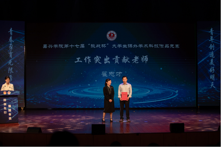 活动现场,对学校在第十七届“挑战杯”全国大学生课外学术科技作品竞赛中成绩突出的单位及个人进行了表彰。钱方明宣读表彰文件,与会校领导和部门(单位)负责人为获奖师生代表颁奖。获奖师生代表翟志才教授、孔玉叶同学分别作交流发言。