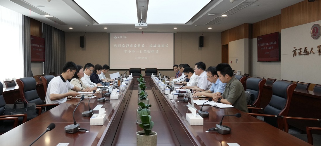 6月8日上午,嘉兴市委常委、统战部部长李小平,统战部常务副部长刘君一行来校走访调研。校党委书记卢新波、党委副书记吴云达、党委组织部(统战部)负责人及党外代表人士参加调研座谈会。