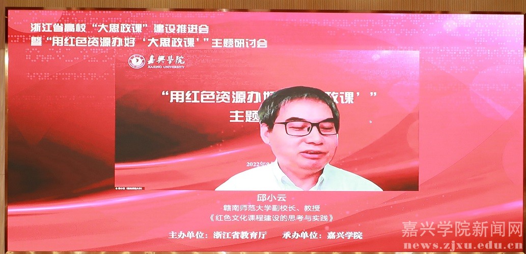 开幕式后,举行了“用红色资源办好‘大思政课’”主题研讨会。北京师范大学中共党史党建研究院院长、北京师范大学党委原副书记、教育部高等学校社会科学发展研究中心原主任王炳林,中国人民大学教授、教育部“长江学者”特聘教授刘建军,华南师范大学马克思主义学院院长、教育部“长江学者”特聘教授陈金龙,武汉大学教授丁俊萍,浙江大学教授段治文,淮阴师范学院校长赵宜江,井冈山大学原校长张泰城,赣南师范大学副校长邱小云线上出席会议并作报告。嘉兴学院党委原副书记、马克思主义学院院长吕延勤主持研讨会。