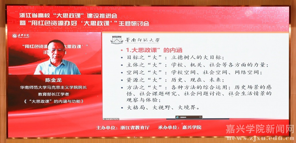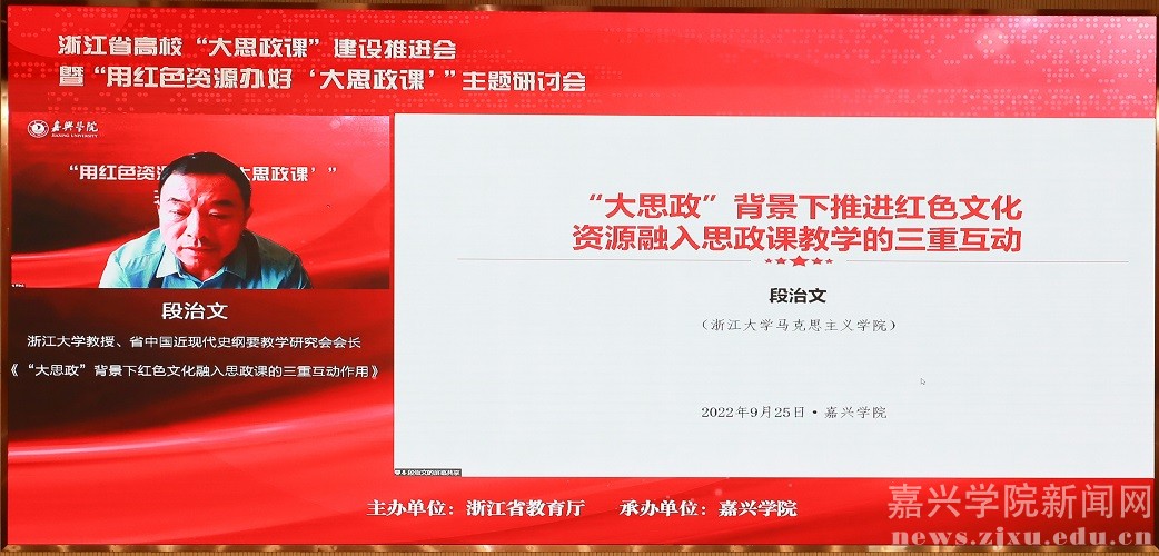 9月25日,浙江省高校“大思政课”建设推进会暨“用红色资源办好‘大思政课’”主题研讨会在我校举办。会议由浙江省教育厅主办、我校承办。浙江省委教育工委专职副书记、省教育厅党组副书记陈春雷,省教育厅宣教统战处处长陈雷,嘉兴市教育局党组书记、局长武曜云,校党委书记卢新波,党委委员、副校长(主持日常工作)胡俊云,党委委员、副校长张琦出席会议。党委副书记吴云达主持开幕式。