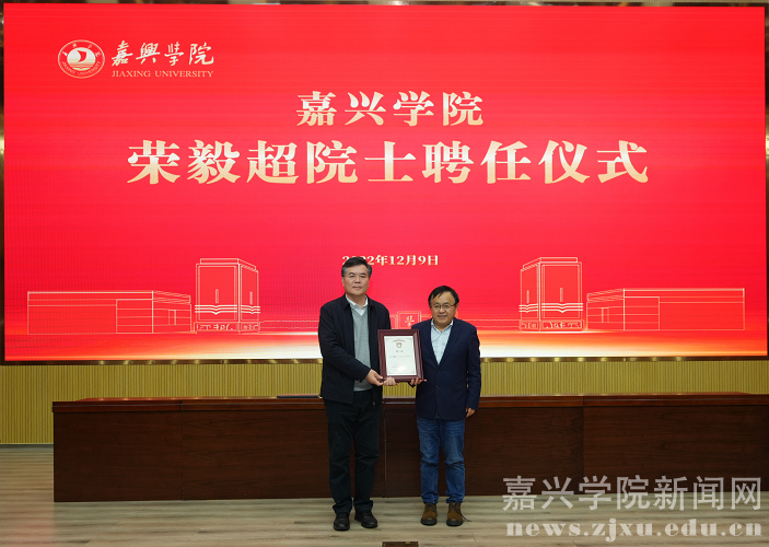 聘任仪式上,胡俊云为荣毅超院士颁发特聘教授聘书。