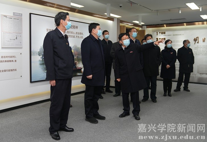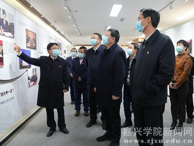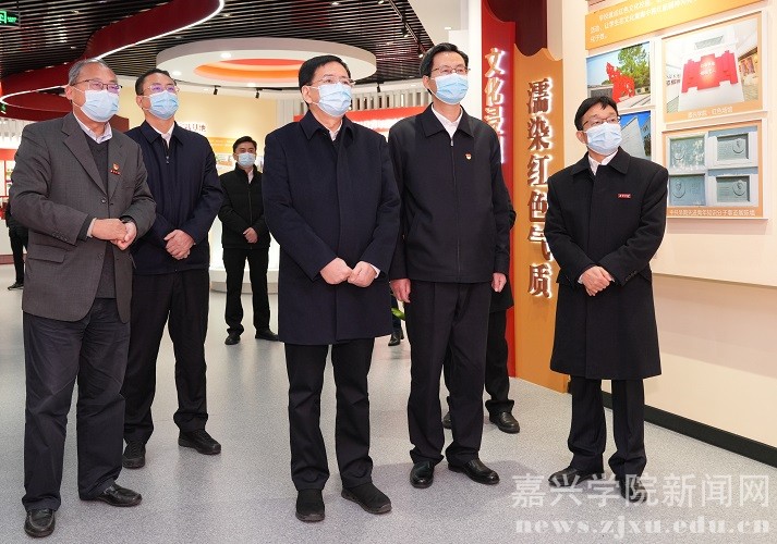 黄建发参观了校办学成果展示馆、红船精神育人成果展示馆,详细了解了学校办学历史和发展现状,充分肯定了嘉兴学院近年来取得的办学成绩。