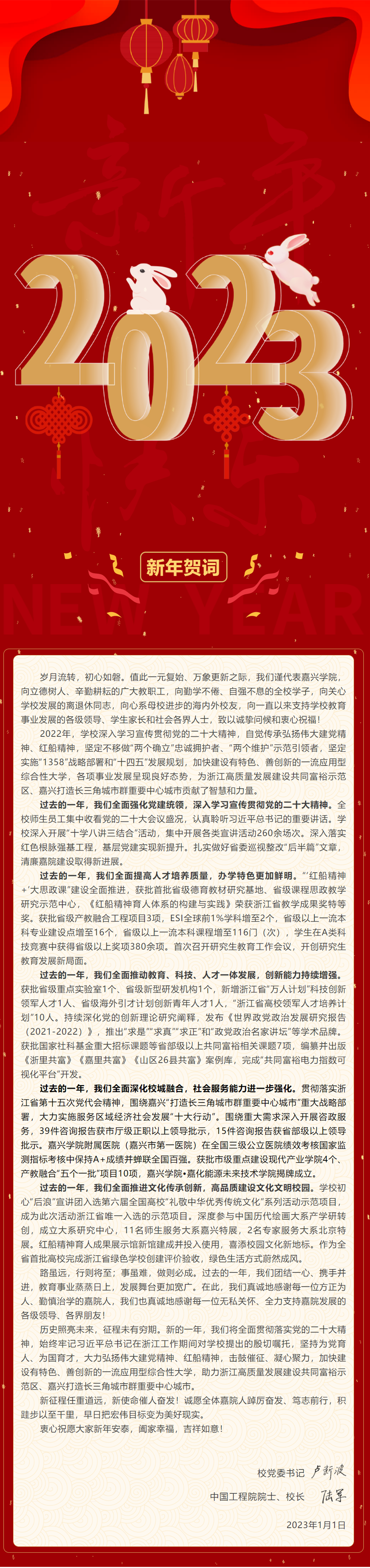 嘉兴学院2023年新年贺词 | 踔厉奋发 击鼓催征