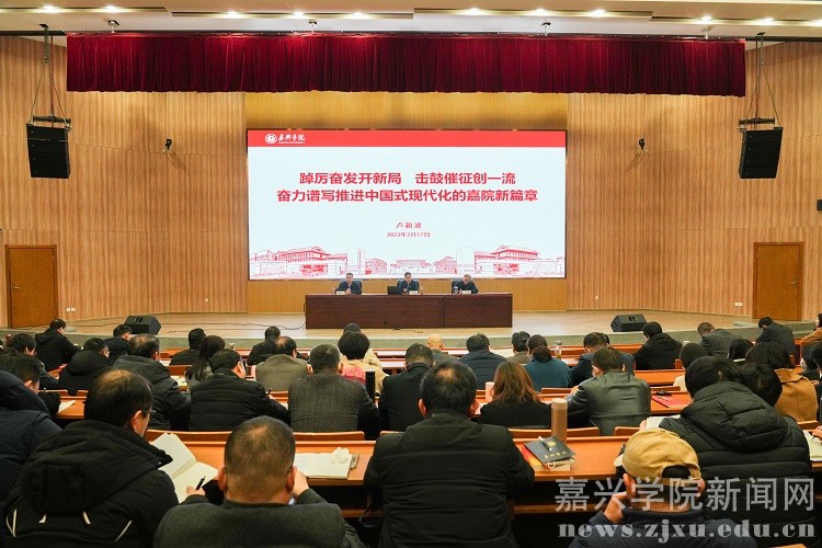 卢新波全面部署了2023年学校重点工作。他强调,要坚持不懈学习贯彻党的二十大精神,持续用习近平新时代中国特色社会主义思想凝心聚魂。以中国革命红船起航地高校的政治担当,深入推进党的二十大精神进教材、进课堂、进头脑,深入推进中国式现代化等党的创新理论研究阐释,深入推动党的二十大作出的决策部署在学校落地生根、形成实效。要坚持主动融入教育、科技、人才一体部署,全力打开学校事业发展新天地。全力打胜人才引育攻坚战,优化人才发展生态、加大人才引进力度、强化人才梯队培养,加快建设人才集聚新高地;全力打响创新能力提升突围战,强化一流学科建设、科研平台建设,推动学科科研成果实现新突破;全力打好校地融合阵地战,聚焦嘉兴市“智造创新强市”新部署,深入推进校城融合,助力嘉兴打造长三角城市群重要中心城市。要坚持落实立德树人根本任务,推进人才培养质量实现新提升。以“三全育人”扩面提优为抓手,完善“大思政课”工作体系,持续擦亮红船精神育人特色,推进思政育人成效实现新提升;以新一轮本科教育审核评估为契机,完善质量保障体系、优化调整专业结构、推进教育教学改革、加强基层教学组织建设,推进本科教育水平实现新提升;加强心理健康、体育、美育、劳育、创新创业教育,优化招生就业服务,推进学生全面发展实现新提升;聚力做好新增硕士点申报工作、硕士研究生招生录取工作,完善研究生人才培养体系,推进研究生教育水平实现新提升。要坚持把改革开放作为活力之源,持续释放高质量发展新动能。系统推动数字化改革工程迭代升级,不断实现教学、科研、管理、服务等的整体智治,充分释放数字化改革新动能;持续推进新时代教育评价改革总体方案落实落地,以创新价值、能力、贡献为导向,强化目标责任与绩效管理,充分释放综合改革新动能;深化与国(境)外一流应用型大学、研究机构的深度交流与合作,加大国际学生培养与国际人文交流力度,充分释放开放办学新动能。要坚持强化党建引领服务保障,激发护航事业发展新作为。强化党的建设引领保障,建强基层战斗堡垒,打造高素质干部队伍,压紧压实管党治党责任,大力营造风清气正的校园政治生态;强化资源服务支撑保障,积极争取地方政府和企业支持,推进办学基础设施与固定资产优化升级,用心用情办好年度民生实事;强化校园安全稳定保障,全面落实意识形态工作责任制,深化“平安校园”建设,统筹疫情防控和教育改革发展稳定,全力确保校园安全与师生安康。