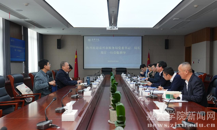 3月10日,嘉兴市税务局党委书记、局长郑汀一行来校交流。校党委书记卢新波、党委副书记吴云达出席座谈会。