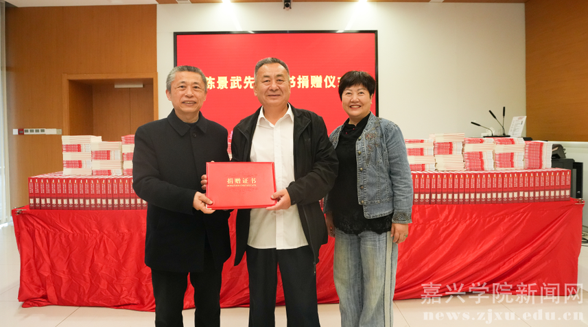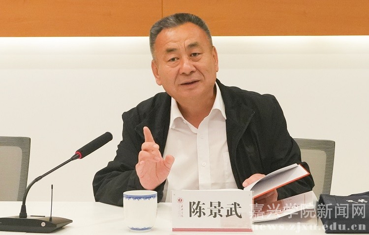 陈景武介绍了所捐赠图书《中国共产党党内法规简明词典》《新时代金融机构党建工作与创新》的编撰出版情况。他表示,嘉兴学院是中国革命红船起航地高校,具有悠久的办学历史和鲜明的办学特色。他将持续关注嘉兴学院,并向学校捐赠线上课程资源,支持学校建设发展。