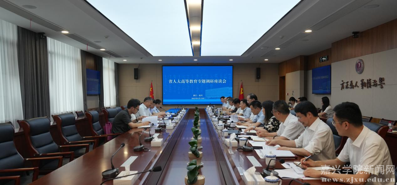 6月13日,浙江省人大常委会委员、教科文卫委员会副主任委员蒋国俊来我校调研,并主持召开高等教育专题调研座谈会。省教育厅二级巡视员李建章、省人大教科文卫委员会办公室二级调研员马岚、省教育厅高教处二级调研员王国银陪同调研。嘉兴市人大常委会副秘书长钟治安,嘉兴市人大常委会委员、市人大教科文卫委员会副主任委员杨勇,嘉兴市教育局党组成员、副局长苏海林,我校党委书记卢新波,嘉兴职业技术学院党委书记方俊良,嘉兴南湖学院党委委员、副院长袁志明,浙江财经大学东方学院院长叶东惠,同济大学浙江学院党委副书记林冶,嘉兴南洋职业技术学院校长助理、教学科研处处长徐意等出席座谈会。