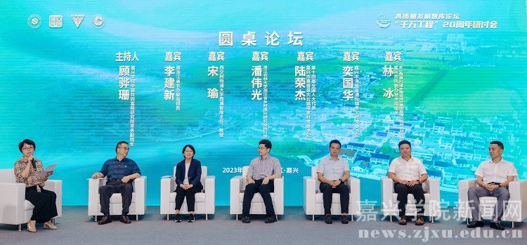 圆桌论坛环节,李建新、西交利物浦大学西浦智库主任宋瑜、浙江农林大浙江省乡村振兴研究院执行院长潘伟光、嘉兴市嘉善县大云镇缪家村党委书记陆荣杰、嘉兴市海盐县通元镇丰义村党委书记奕国华、嘉兴市风貌办技术组组长兼长三角(嘉兴)城乡建设设计集团有限公司规划研究院副院长林冰分别就浙江“千万工程”典型做法、苏州对“千万工程”的借鉴、“千万工程”建设与农业农村现代化关系、缪家村由穷变富、丰义村由脏变美、嘉兴城乡风貌蝶变升级等内容进行了交流和互动。诸位嘉宾一致认为,要从“千万工程”中学习为民情怀,坚持人民至上,从“千万工程”中学习求实作风,坚持实事求是,从“千万工程”中学习做事方法,坚持久久为功。