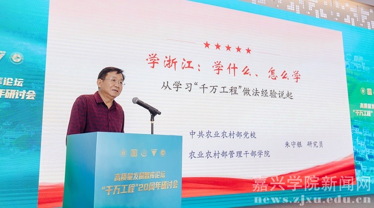 朱守银从浙江“千万工程”的历程、要求、做法、经验等方面分析了学习浙江“千万工程”的“学什么”,从浙江“千万工程”展现的先进理念、规律意识、辩证方法等方面阐述了学习浙江“千万工程”的“怎么学”。他指出,学习浙江“千万工程”做法经验,不是要照抄照搬个别地方和某些方面的具体做法、短期目标等,而是要深刻体会和准确把握浙江“千万工程”蕴含的世界观和方法论。他强调,“千万工程”源于习近平同志的深厚农民情结和真挚为民情怀,充分体现了人民至上的世界观和方法论,学习浙江“千万工程”要从宗旨意识、人民观念、思想路线、群众观念学起。