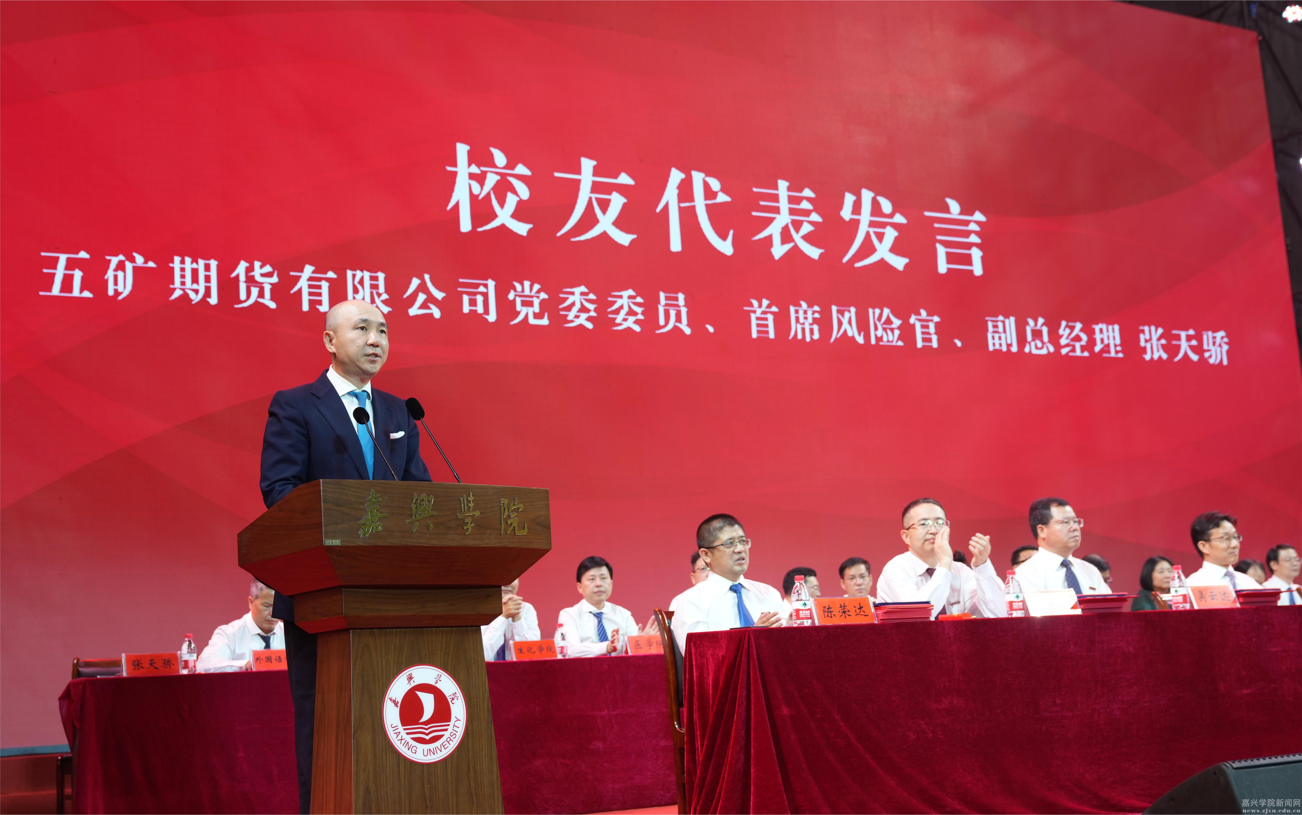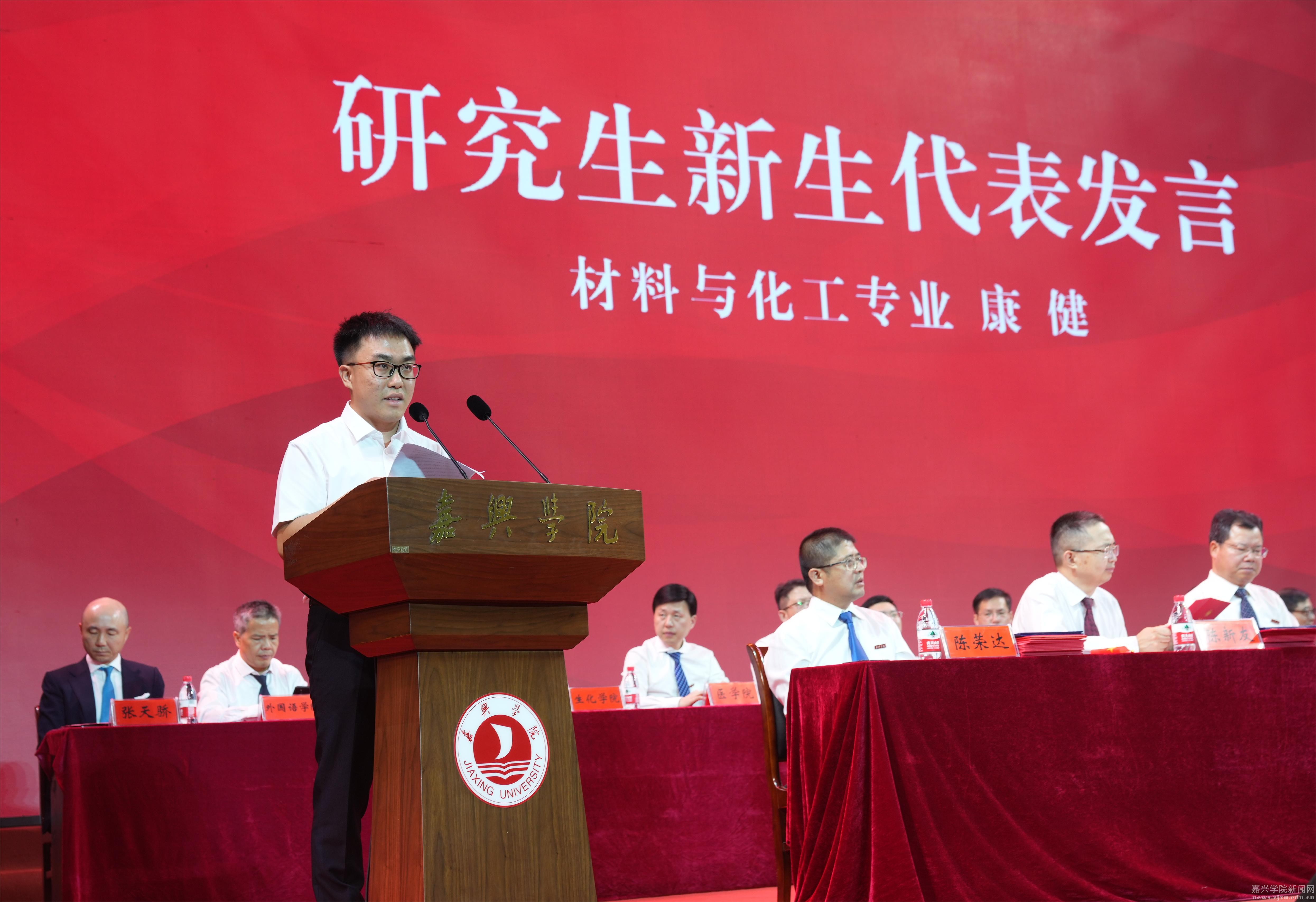 教师代表、省“高校优秀思政课老师”、马克思主义学院李云波老师,校友代表、1993届校友、五矿期货有限公司党委委员、首席风险官、副总经理张天骄,研究生新生代表、生物与化学工程学院材料与化工专业硕士康健,本专科新生代表、经济学院经济学专业本科生夏袁焰分别发言。