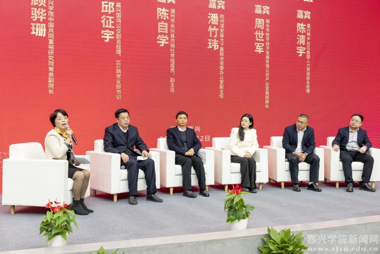 圆桌论坛环节,嘉兴国鸿公交副总经理、101路党支部书记邱征宇,湖州市长兴县供销社党组成员、副主任陈自学,淳安县大下姜联合党委办公室副主任潘竹玮,丽水市数字经济发展有限公司产业发展部部长周世军,巨石集团人力资源部总经理陈清宇等在浙江省高质量发展建设共同富裕示范区中涌现出的党建统领联合体、乡村振兴联合体、农业产业联合体、山海协作联合体、员工利益共同体代表,围绕“共同富裕联合体”实践探索与理论价值,就共同富裕的最新实践经验分享了宝贵经验。