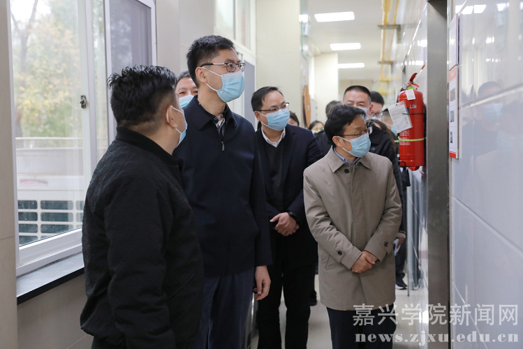 12月11日,嘉兴市委常委、副市长、嘉兴经开区党工委书记齐力来校检查食品安全工作。校党委书记卢新波,党委委员、副校长王立玮陪同检查。