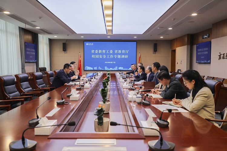 4月17日,省委教育工委专职副书记、省教育厅党组副书记许翰信一行来校就校园安全工作开展专题调研。嘉兴市教育局党组成员、副局长王郁春,校党委书记卢新波、党委副书记钱方明等出席座谈会。