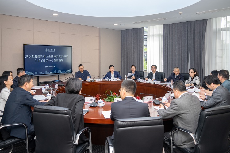 4月20日下午,嘉兴市卫生健康委党委书记、主任王伟荣一行来校调研交流。中国工程院院士、校长陆军等出席座谈会。
