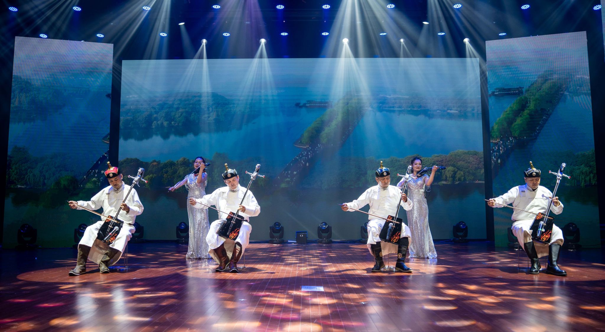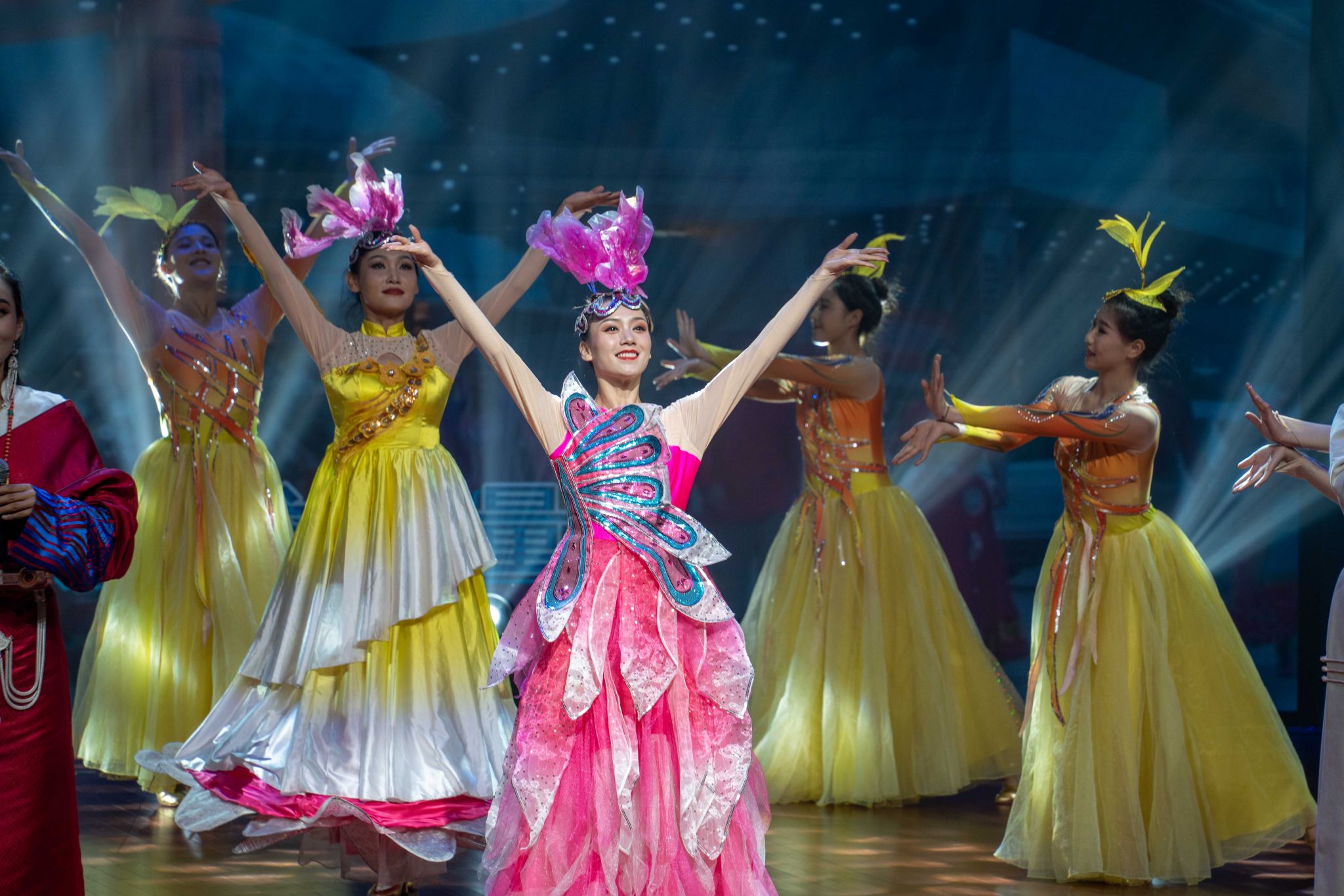 女声独唱《青藏高原》以其纯净激昂的歌声,引领听众穿越云端,感受那份震撼心灵的高原之美,器乐联奏《爱在海西》巧妙融合了东西方乐器,流淌着海西人对乡土与祖国深情厚意。独具海西地域特色的舞蹈《那达慕盛会》和民族服饰表演《卓姆》以及潇洒奔放的器乐连奏《梁祝》《万马奔腾》,带领观众领略了海西壮美的自然风光及风土人情。演员们通过民族歌舞、情景表演、器乐联奏等多元化的艺术表现形式,展现了在海西广袤的土地上40多个民族交流融通、和谐繁荣的生活场景,唱响了浙青两省虽远隔千里却饱含深情的友谊之歌。