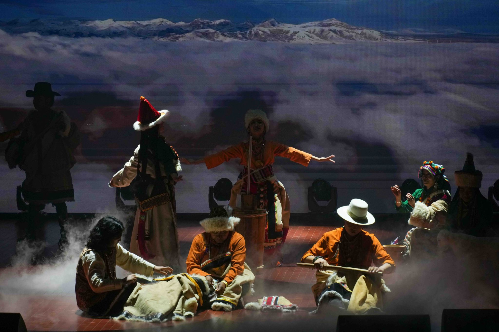 演出前,“祖国聚宝盆·神奇柴达木”摄影展在剧场外展出,向观众全景展现了海西州独特的蒙藏文化和神奇自然的风光。