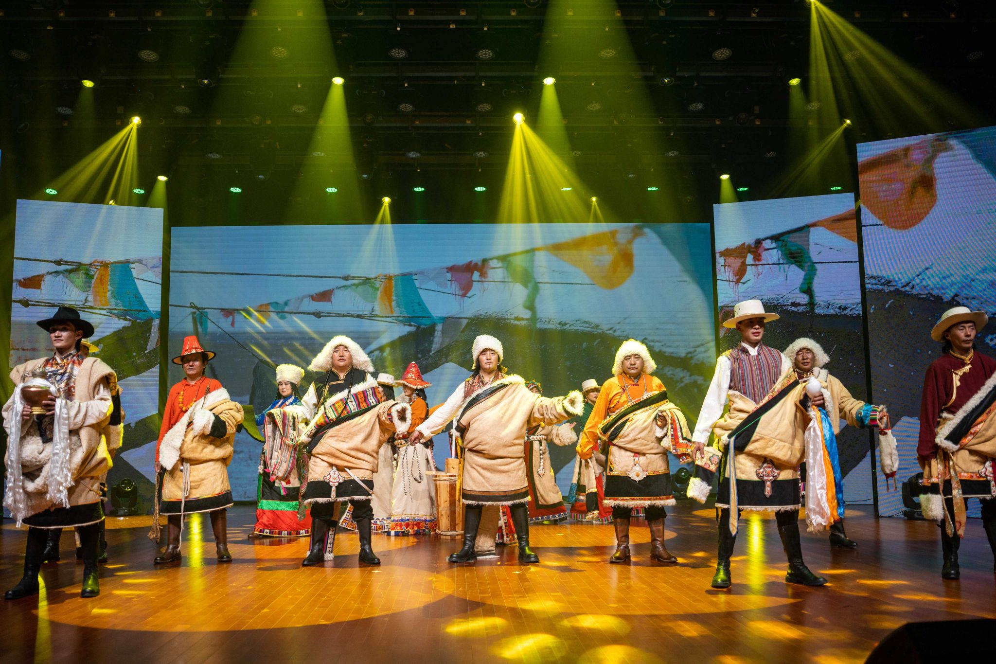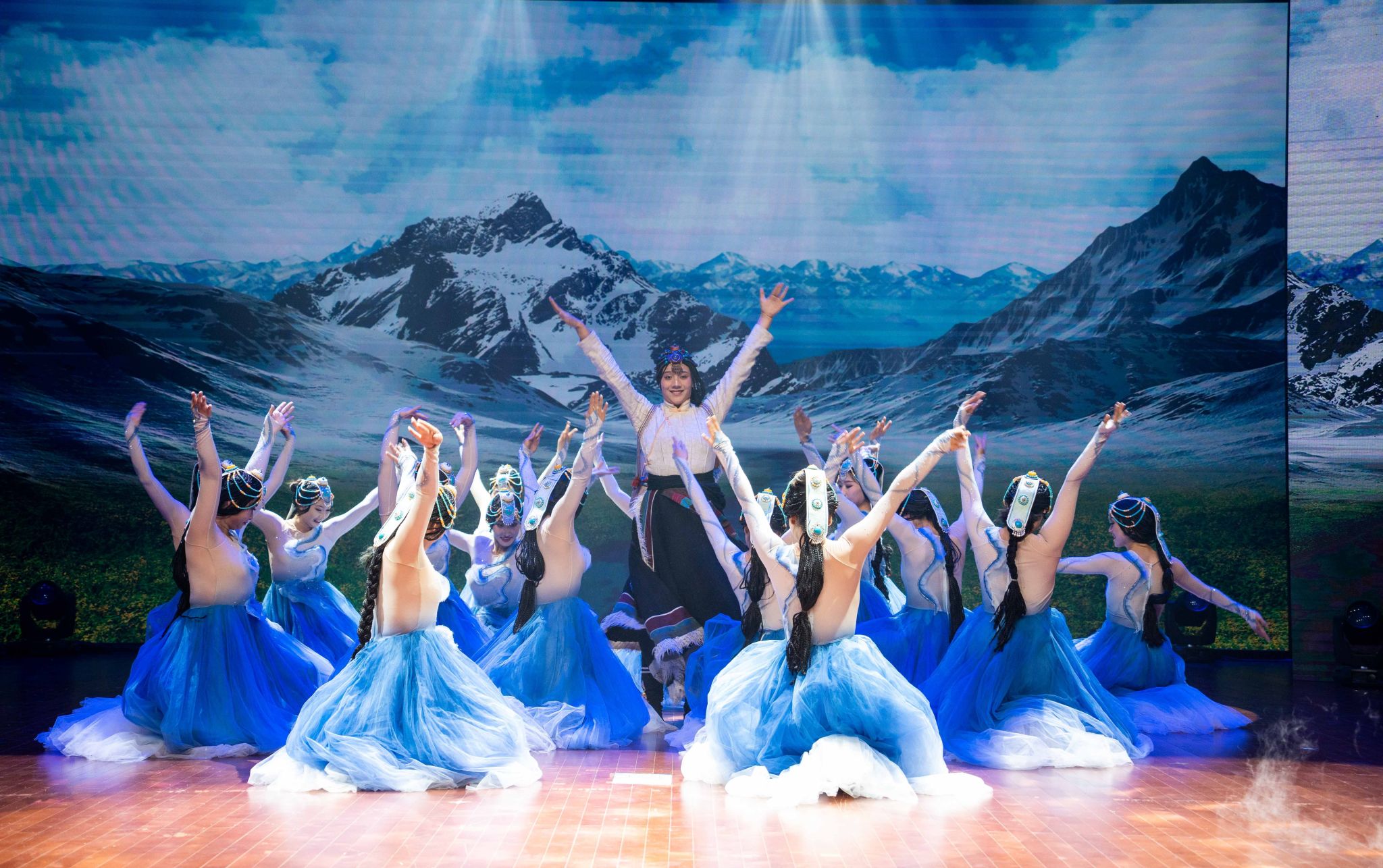 晚会上,海西州民族歌舞团将高原的壮丽与文化的多彩完美交融,带来了一场视觉与听觉的双重盛宴。在高原儿女的热情歌舞中,轻盈的哈达在空中翩翩起舞如同高原上的白云,自由而悠扬,一幅山峦叠翠、水波荡漾、自然与文化交织的画卷徐徐展开,让在场的每一位观众仿佛置身于充满幸福的梦幻海西。