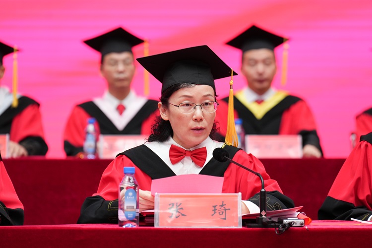 全体校领导,二级学院主要负责人及教师代表,共同为获学士学位的2024届毕业生代表授予学士学位证书、拨穗。