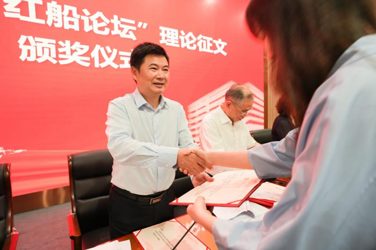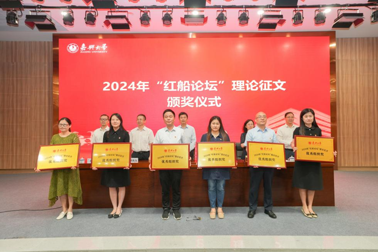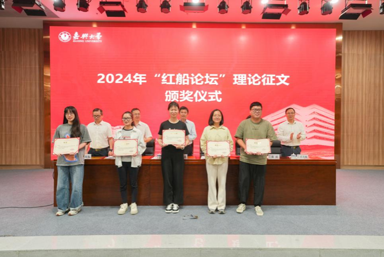 钱方明宣读表彰文件。与会校领导为2024年“红船论坛”理论征文获奖集体和个人颁奖。