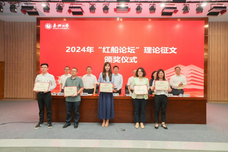 2024年“红船论坛”理论征文一等奖获得者、马克思主义学院副教授蒋少容,一等奖获得者、设计学院侯佳希,二等奖获得者、创新创业学院刘清泉3位老师分别围绕《共同富裕提升制度自信的理论逻辑与实践路径》《嘉兴红色文化在文创设计中的创造性转化与创新性发展》《新质生产力赋能创新创业教育高质量发展的内在逻辑、价值与路径》等主题作交流发言。