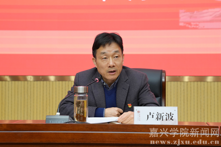 卢新波指出,学校党委坚持“五个到位”,扎实推进党史学习教育规定动作不走样、创新动作显特色。一是提高政治站位,以组织领导到位确保全覆盖。成立党史学习教育领导小组,组建工作专班与工作组,排出时间表、下达任务书,做到动员部署全覆盖、宣讲培训全覆盖、参与实践全覆盖,为高标准、高质量开展党史学习教育提供强有力的保证。二是强化系统思维,以统筹协调到位打好组合拳。坚持系统思维,科学谋划方案,打出系列活动组合拳,开展“在红船起航地学党史”专题学习活动、“追寻‘真理的味道’”专题宣讲活动、“守好‘红色根脉’”专题宣传教育活动,做深做实、做精做亮“红色”篇章,不断彰显“红船味”“浙江味”“新时代味”“嘉院味”。三是坚守初心使命,以目标成效到位推进办实事。坚持目标导向、问题导向、效果导向,开展我为师生员工办实事、我为企业(行业)解难题、我为基层减负担、我为学校发展立新功等“红船护旗手”专题实践活动。四是弘扬主流价值,以宣传引领到位营造好氛围。加强正面宣传和舆论引导,用足用好各种媒体媒介资源,通过传播嘉里好声音、用好校园各类阵地、征订编印学习资料等举措为党史学习教育营造浓厚舆论氛围。五是勇担时代重任,以学用结合到位开创新局面。坚持党对学校工作的全面领导,把党建引领融入办学治校各个环节,发挥党委的领导核心作用,围绕学校中心工作,坚强领导,服务大局,促进高质量发展,取得获批硕士学位授予单位、顺利完成独立学院转设、全面启用梁林新校区等显著成绩。