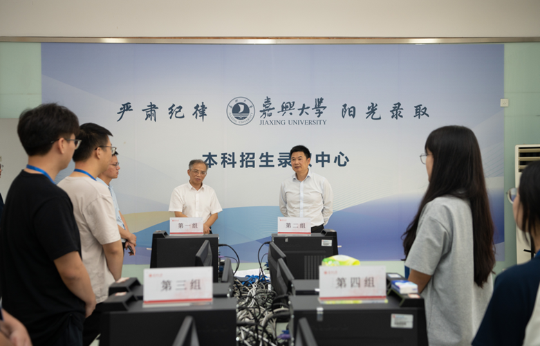 7月11日下午,校党委书记沈希、党委副书记钱方明一行来到学校招生录取现场视察工作,听取了2024年招生录取情况汇报,对进一步做好学校招生录取工作进行指导,并对坚守招录岗位的工作人员进行了亲切慰问。