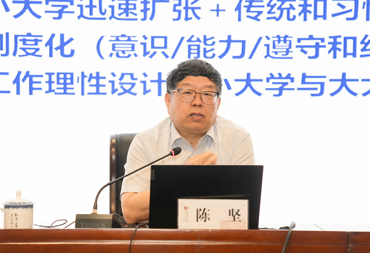 中国工程院院士、江南大学原校长陈坚作题为《大学领域 机遇无限——关于学科建设和团队发展的思考》的辅导报告。陈坚院士介绍了江南大学的办学定位,学科建设的指导思想、建设举措、建设成效,分享了加强团队建设、干部能力提升的深入思考,对学校推进学科建设和团队发展具有很强的启发性和指导性。