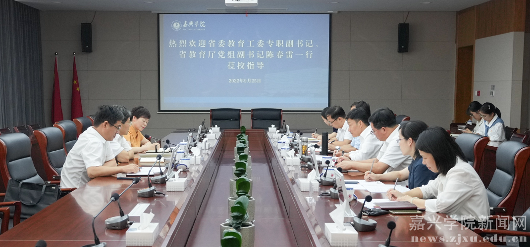 9月25日,省委教育工委专职副书记、省教育厅党组副书记陈春雷来校调研指导工作。省教育厅宣教统战处处长陈雷,嘉兴市教育局党组书记、局长武曜云陪同调研。校党委书记卢新波、党委副书记吴云达,党委委员、副校长(主持日常工作)胡俊云,党委委员、副校长张琦出席相关活动。