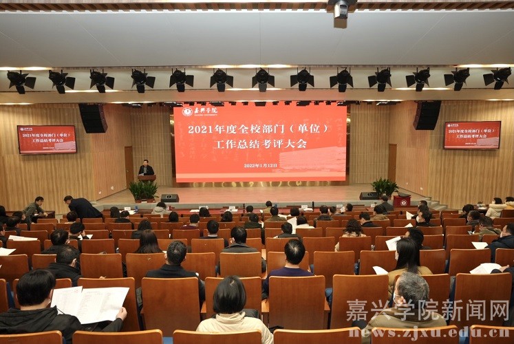 1月12日,学校在学术报告厅召开2021年度部门(单位)工作总结考评大会。全体校领导、学校考核工作领导小组成员、全体中层干部参加会议。