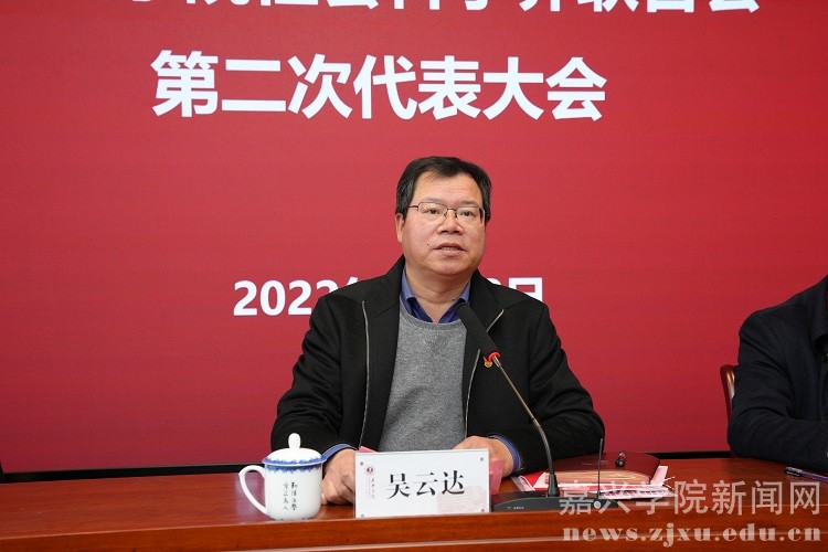 吴云达代表学校新一届社科联发言。他指出,中华民族伟大复兴中国梦的实现,离不开哲学社会科学的繁荣发展。广大哲学社会科学工作者要切实增强责任感和紧迫感,以面向国民经济主战场,服务国家重大战略和地方经济社会发展为已任,大力繁荣发展哲学社会科学。一要加强政治引领,铸牢忠诚之魂,坚持用习近平新时代中国特色社会主义思想武装头脑,引领广大哲学社会科学工作者,坚定不移做“两个确立”忠诚拥护者,“两个维护”示范引领者。二要强化以人为本,夯实人才之基,建符合哲学社会科学人才发展自身规律的体制机制,建好人才梯队,营造好学术生态。三要紧扣时代脉搏,回答时代之问,正确认识和把握新的重大理论和实践问题,产出系列理论和智库成果,发挥好“思想库”和“智囊团”作用。