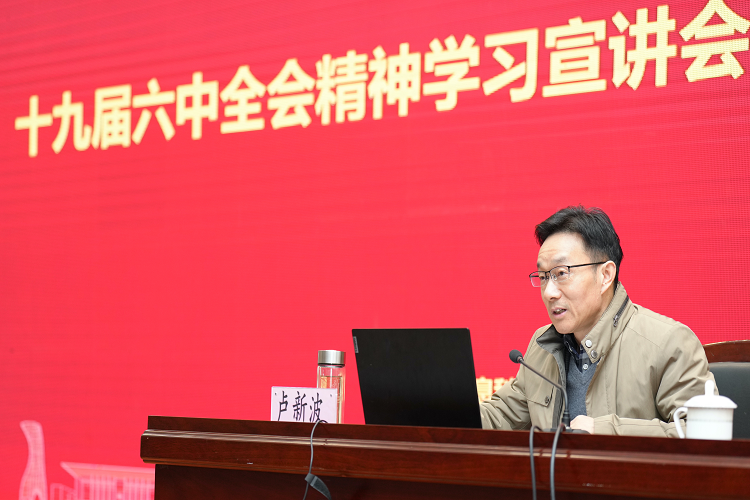 校党委书记卢新波围绕如何深入领会党的十九届六中全会精神的重要意义、如何深刻认识全会精神的丰富内涵、如何从全会精神中汲取智慧和力量进行了深入解读。他表示,党的十九届六中全会是我们党牢记初心使命、永葆生机活力的政治宣示,深刻把握历史规律、掌握历史主动的战略决策,以史为鉴、走好新时代赶考之路的进军号令。全会审议通过的《中共中央关于党的百年奋斗重大成就和历史经验的决议》,是一篇闪耀真理光芒、在党的历史上具有重要里程碑意义的马克思主义纲领性文献。他要求全校上下要一体推进决议精神、习近平总书记报告和重要讲话精神的学习贯彻,深入学习领会、做到真学,掌握要义精髓、做到真懂,着力融会贯通、做到真信,力求知行合一、做到真用,充分汲取全会精神的智慧和力量,加快一流应用型综合性大学建设步伐。一要坚持党的领导。依托南湖红船旁办学的独特政治优势,大力弘扬伟大建党精神和红船精神,强化党的政治建设、思想建设、组织建设、作风建设、纪律建设、制度建设,把党建引领融入办学育人各个环节,发挥学校党委的领导核心作用,强化基层党组织的政治功能。二要坚持立德树人。强化中国革命红船起航地高校的政治担当,牢记“为党育人、为国育才”初心使命,坚持用习近平新时代中国特色社会主义思想铸魂育人,持续推进全员全过程全方位育人,大力培养具有“坚定理想信念、强烈社会责任感、卓越创新精神”的堪当民族复兴大任的时代新人。三要坚持高质量发展。锚定“1358”战略部署,实施领航强基、铸魂育人、学科引领、育引并举、开放融合、能力提升、民生保障、改革赋能八大工程,聚焦重点领域和关键环节,着力破解制约学校发展的深层次问题,咬定目标、接续奋斗,全力推进“创大”“建一流”。