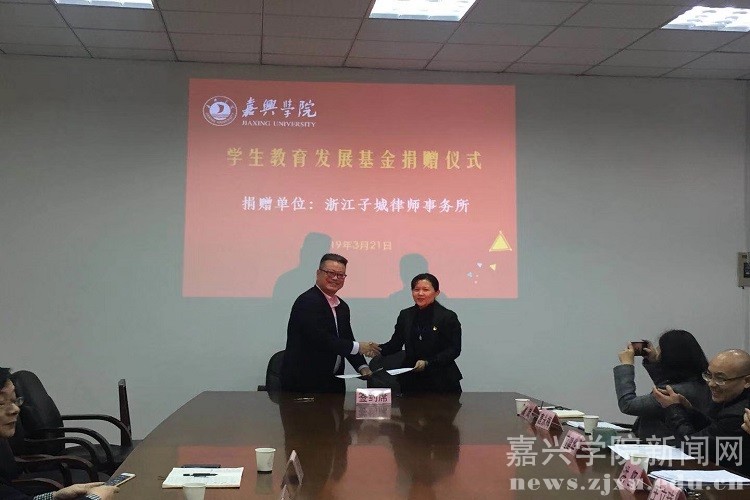 双方签署了《浙江子城律师事务所——嘉兴学院教育发展基金会捐赠协议书》;随后,举行了座谈,就深化院所合作、加强支部共建等问题达成了共识。