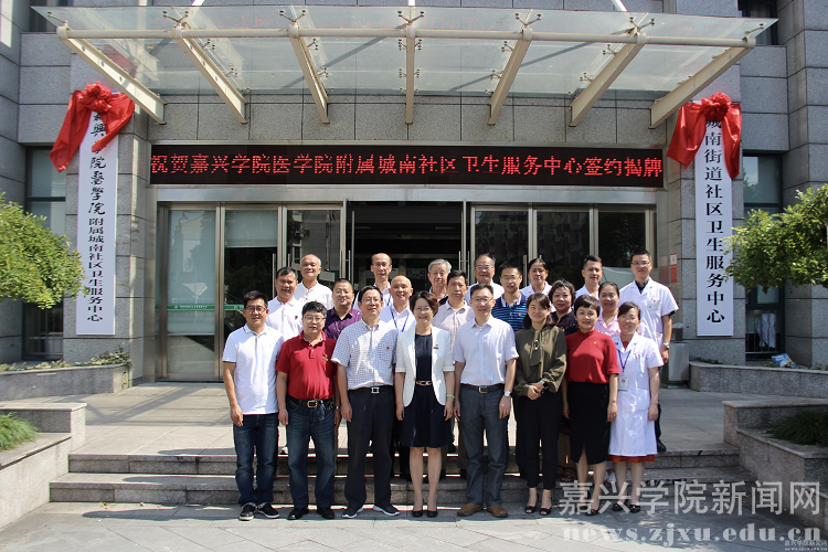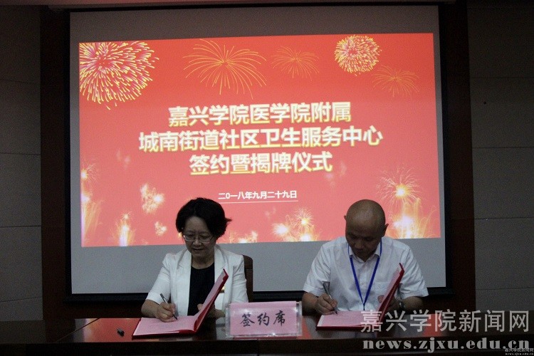 9月29日上午,我校医学院附属城南街道社区卫生服务中心签约暨揭牌仪式在城南社区卫生服务中心举行。医学院常务副院长黄嬛、副院长徐营,我校附属第一医院院长、医学院副院长钱钢,嘉兴经济技术开发区(国际商务区)管委会党工委委员和副主任朱甫荣出席签约仪式。