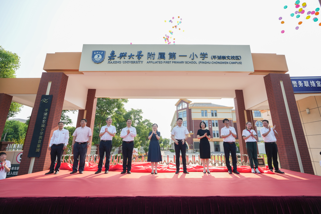 我校相关部门主要负责人,平湖市相关部门(单位)负责人,嘉兴大学附属第一小学(平湖崇文校区)师生和家长代表参加仪式。