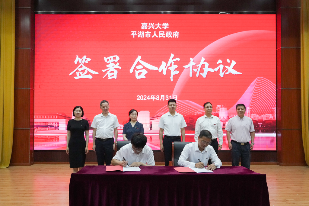 揭牌仪式上,我校和平湖市共同签署合作协议。此次签约是双方融合发展的深入探索实践,校地双方将在共同打造教育品牌、开展教育科研与教育培训合作、推进教育资源共享、共建大学生实习基地、互派教师挂职锻炼等方面开展合作,充分发挥嘉兴大学优质教育资源的辐射引领作用,推动平湖基础教育高质量发展,让平湖孩子在家门口“上好学”的民生愿景变为幸福实景。