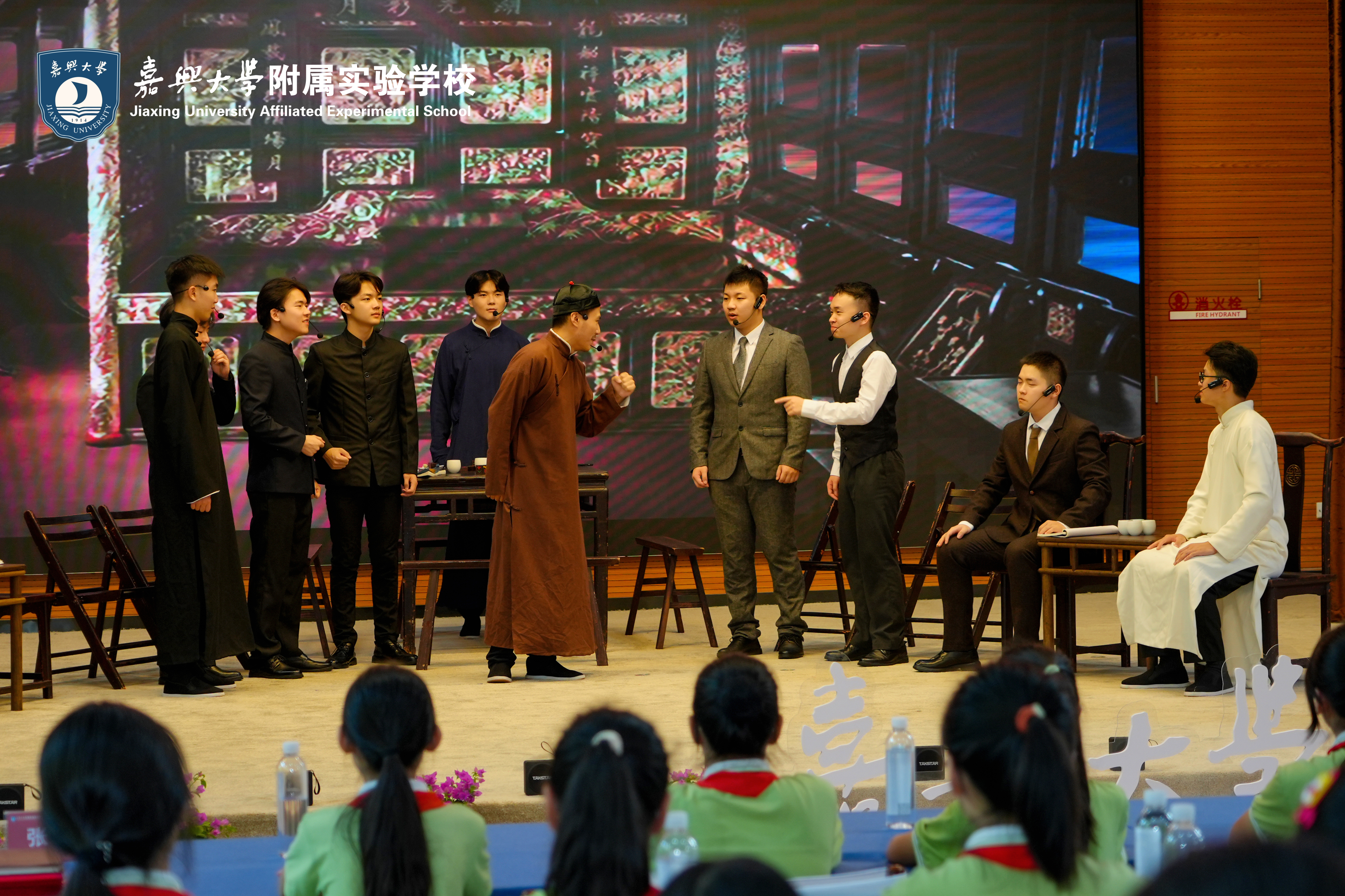 揭牌仪式后,我校学生带来了生动而有教育意义的原创红色话剧《初心》表演,携手嘉兴大学附属实验学校学生共同开启新学期的第一课。
