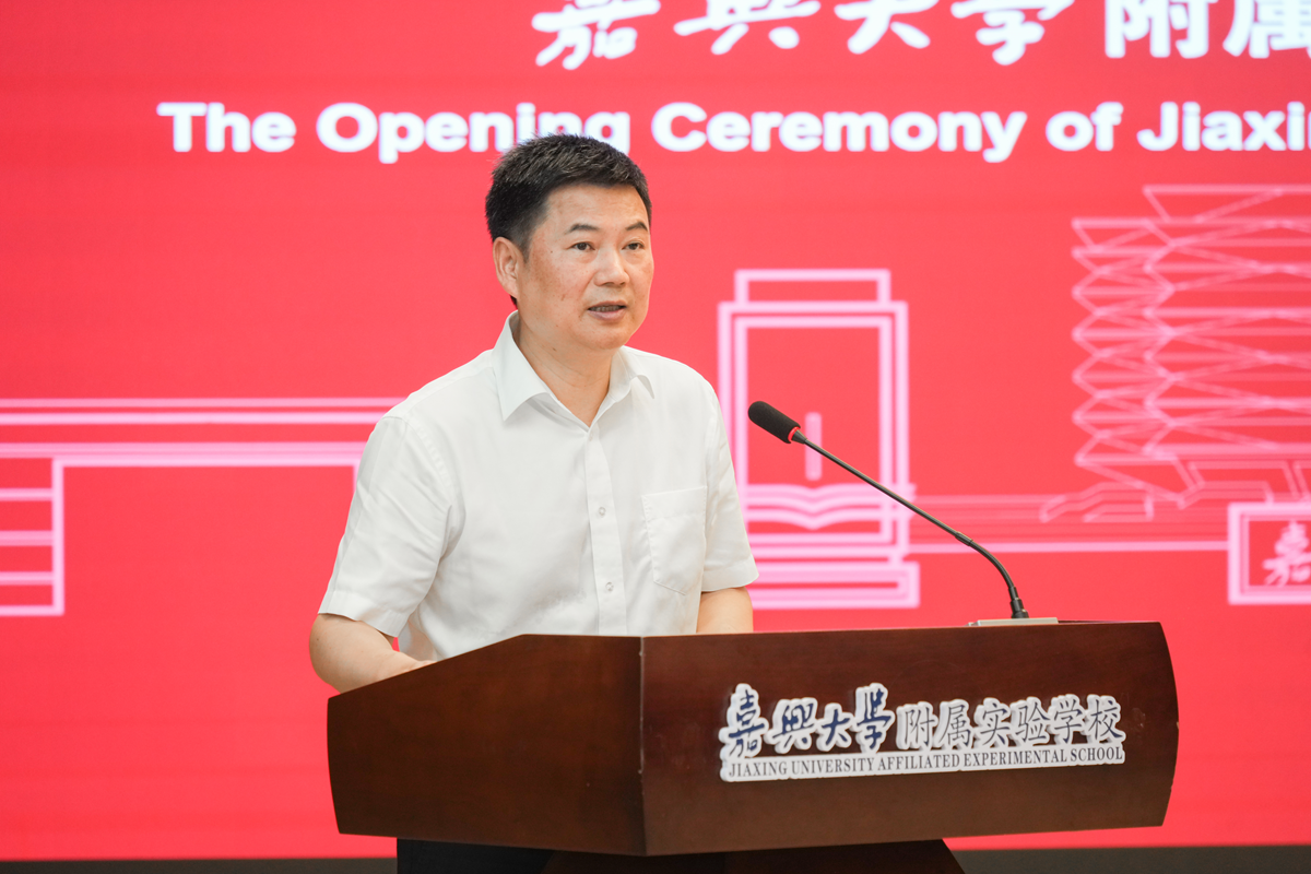 沈希在致辞中指出,嘉兴大学附属实验学校的正式揭牌,是学校与嘉兴市经开区合作办学的又一重大成果,也是学校办好“家门口的学校”的重要举措。他表示,嘉兴大学将继续秉承“资源共享、优势互补、互利共赢”的原则,充分用好嘉兴市的政策、环境和区域资源,发挥学校在师资培训、课程研发、科研创新等方面的优势,积极探索基础教育与高等教育融合发展的新路径,力争将附属实验学校办成一所“理念先进、质量优异、特色鲜明”的现代化优质公办学校,进一步提升嘉兴市公办义务教育优质均衡发展水平,为嘉兴市教育事业高质量发展注入新的活力。