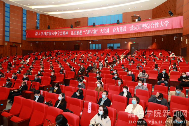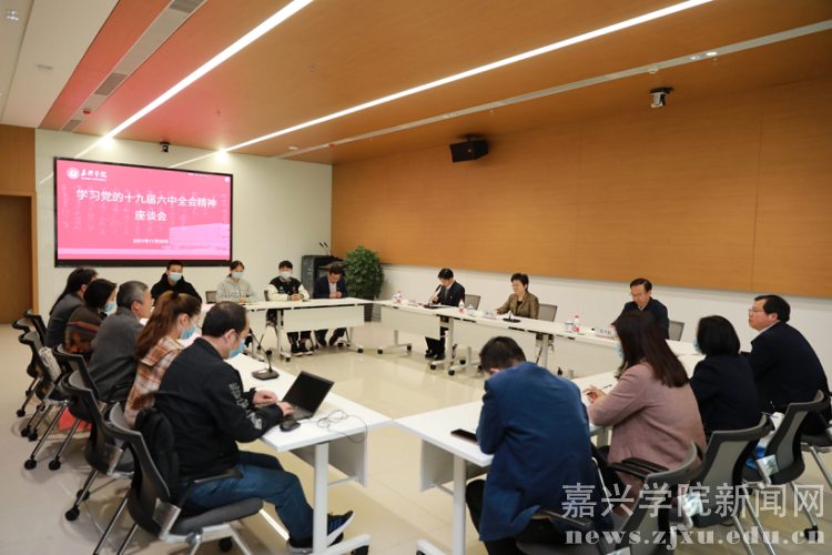 陈奕君强调,学习贯彻六中全会精神是当前和今后一个时期的一项长期政治任务。嘉兴学院党委要按照省委“六讲六做”大宣讲活动要求,把学习贯彻六中全会精神与开展党史学习教育结合起来,与学习贯彻即将召开的省委十四届十次全会精神贯通起来,一体学习推进,一体贯彻落实;要充分发挥学校各级领导干部的带头引领作用,推动各级党组织把学习六中全会精神作为主题党日的核心内容,确保把六中全会精神传达贯彻到学校的每个党组织、每个党员,推动学习宣传贯彻六中全会精神走深走实。