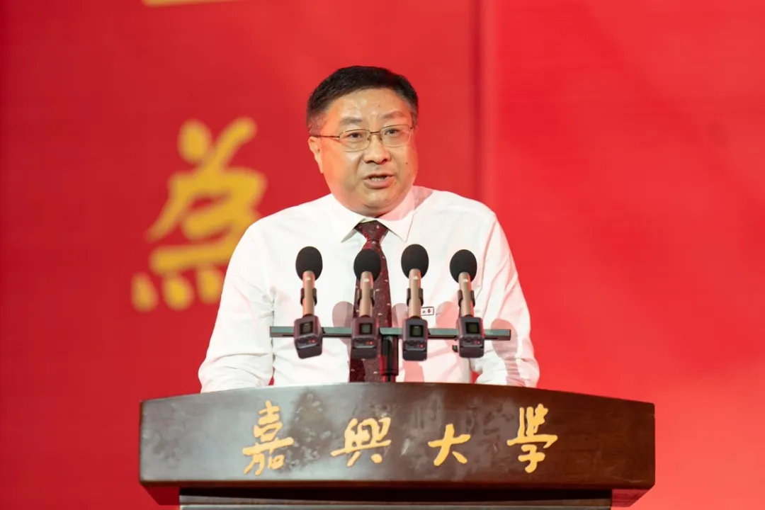 中国工程院院士、校长陆军以“青春逢盛世 强国当有为” 为主题发表讲话。他表示,今年是中华人民共和国成立75周年,是嘉兴大学办学110周年。110年来,嘉兴大学的发展始终与国家发展、民族复兴伟业紧密相连,一代代嘉大人始终与党同心、与国同行,自觉将报国为民的理想融入血脉,淬炼形成了“自强不息、百折不挠”的光荣传统,锻造了“求实奋进”的办学品格。