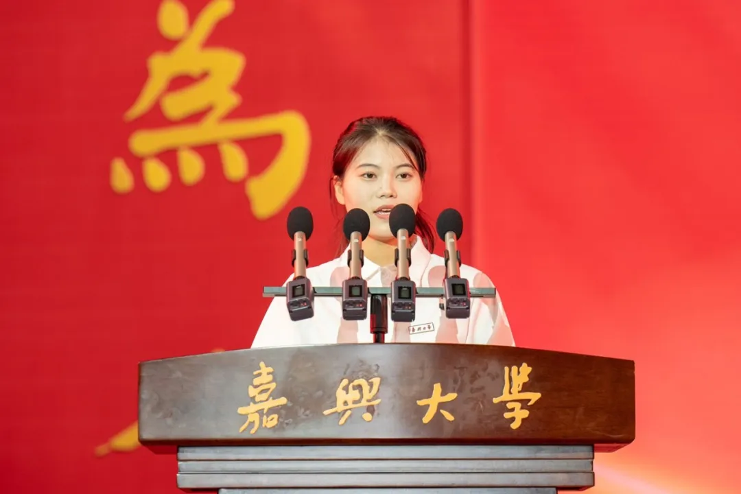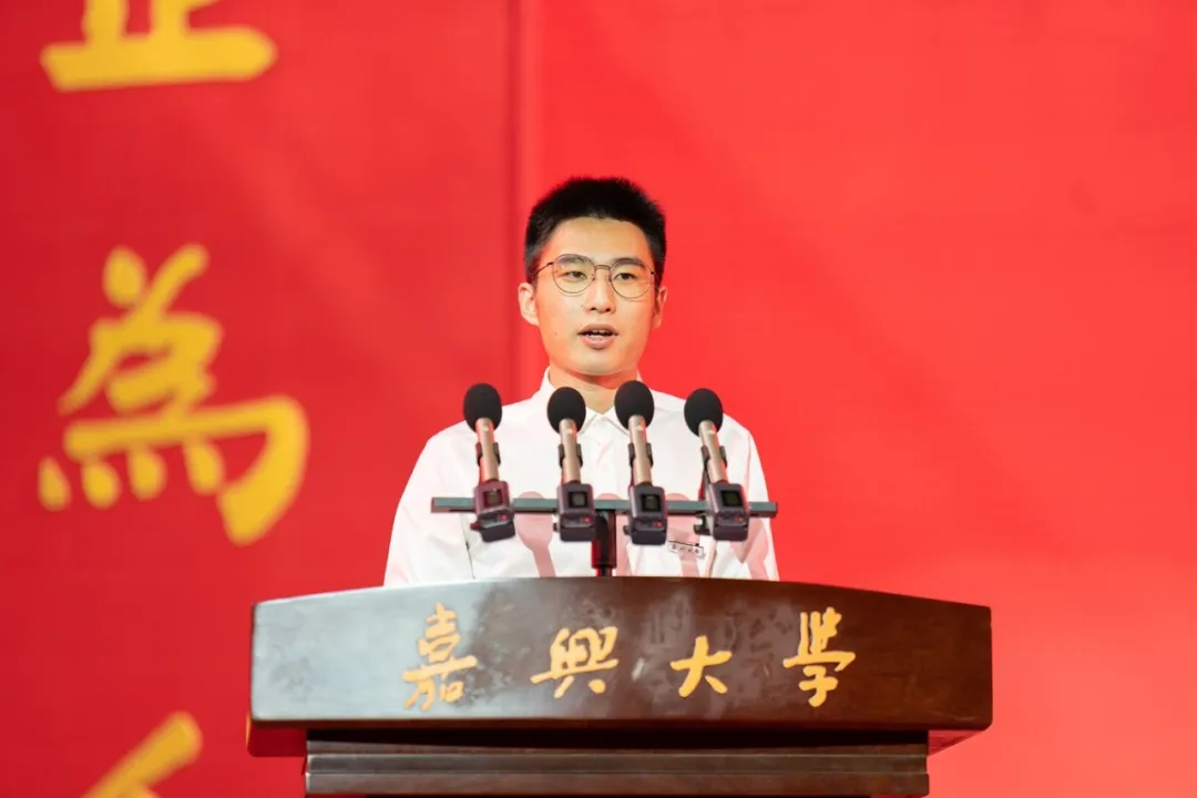 研究生新生代表、马克思主义理论专业肖明雨在发言中表示,“将立志立德守初心,求是求真做学问,躬身躬行担大任,争做嘉大学子中的启明星、领航者,用赤诚之光照亮前行的路,和所有新同学一起践行好‘强国有我’的青春誓言。”