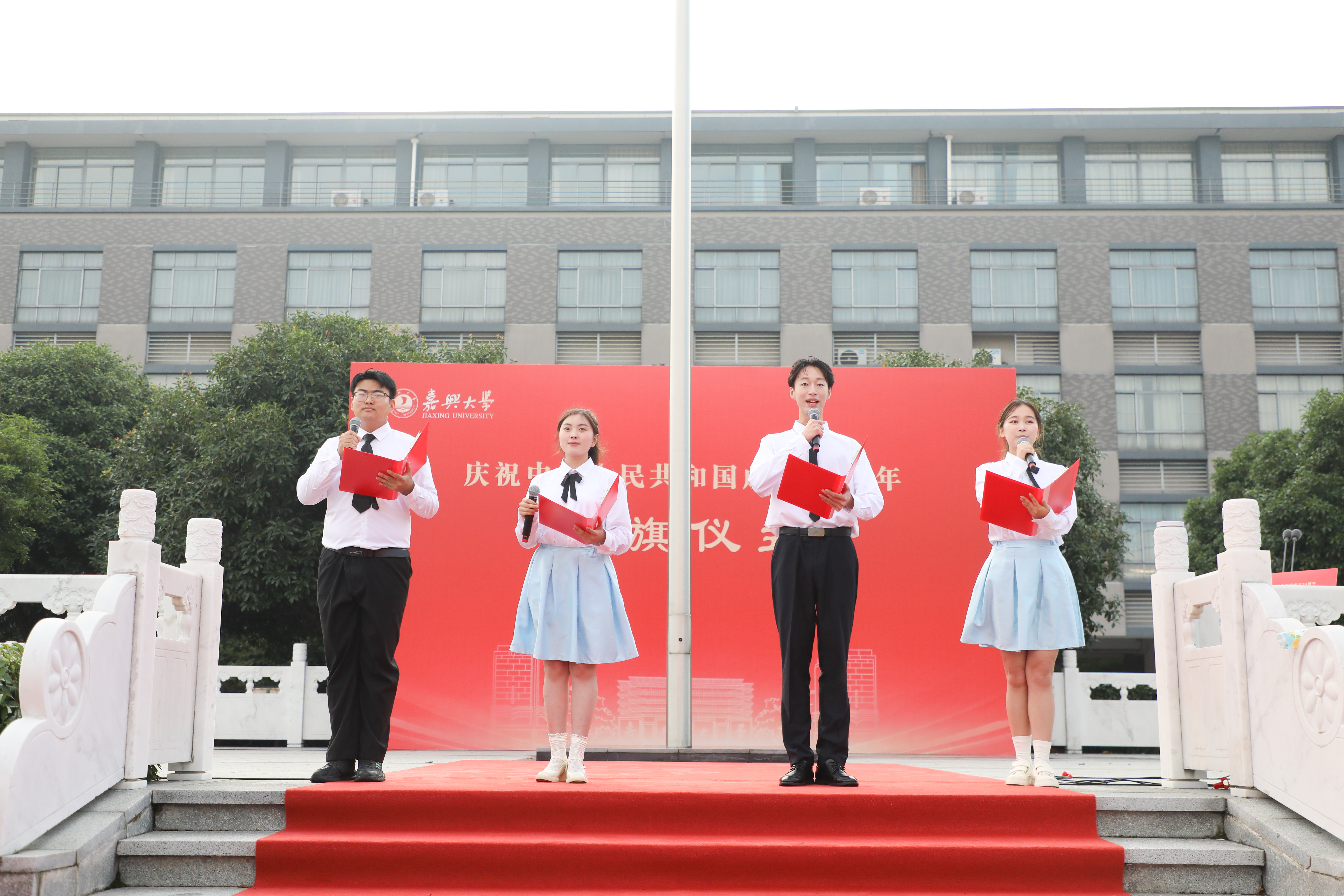 大学生艺术团带来诗朗诵《国旗,我向您敬礼》。站在鲜艳的五星红旗下,嘉大青年学子向伟大的祖国致以最深情的告白。