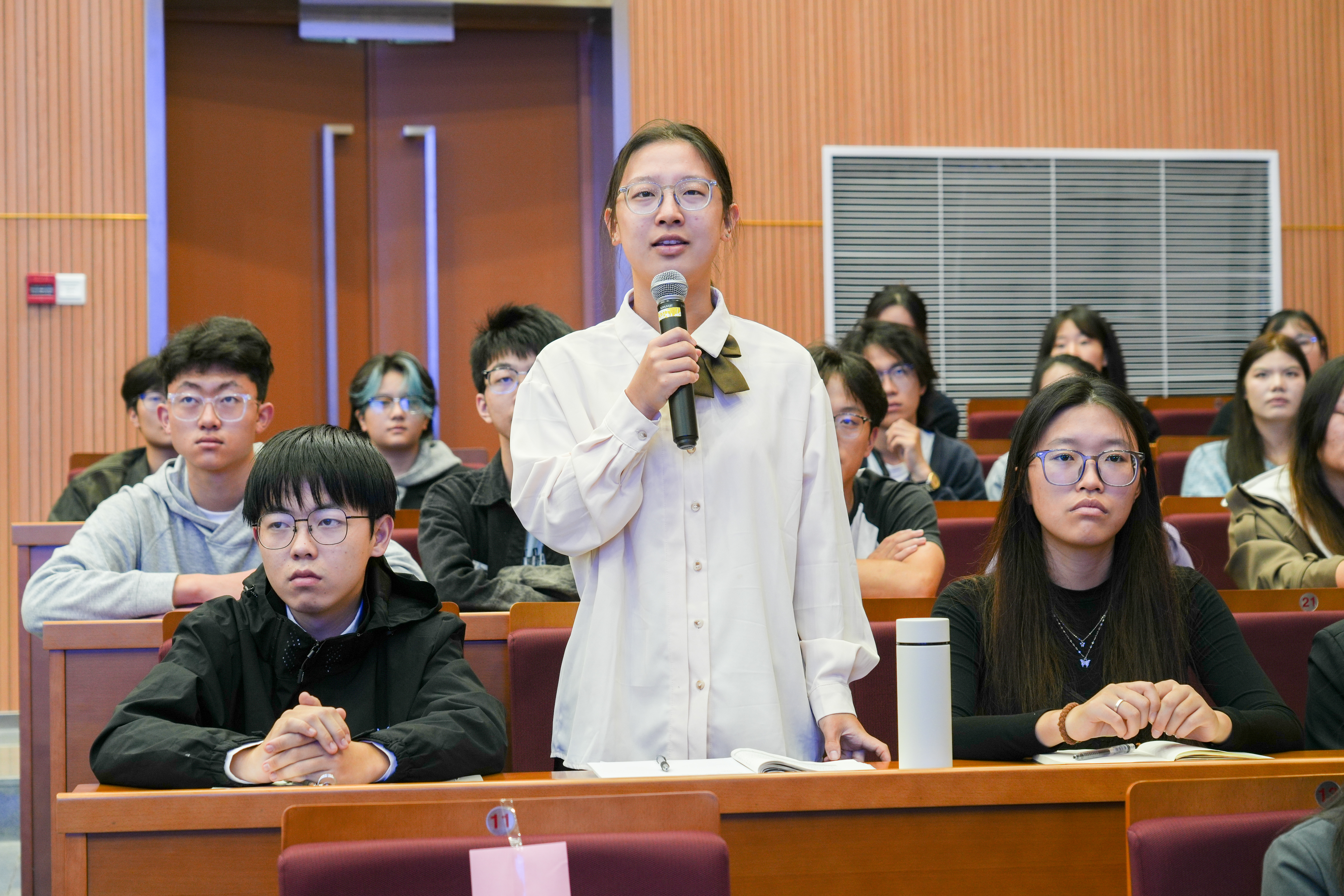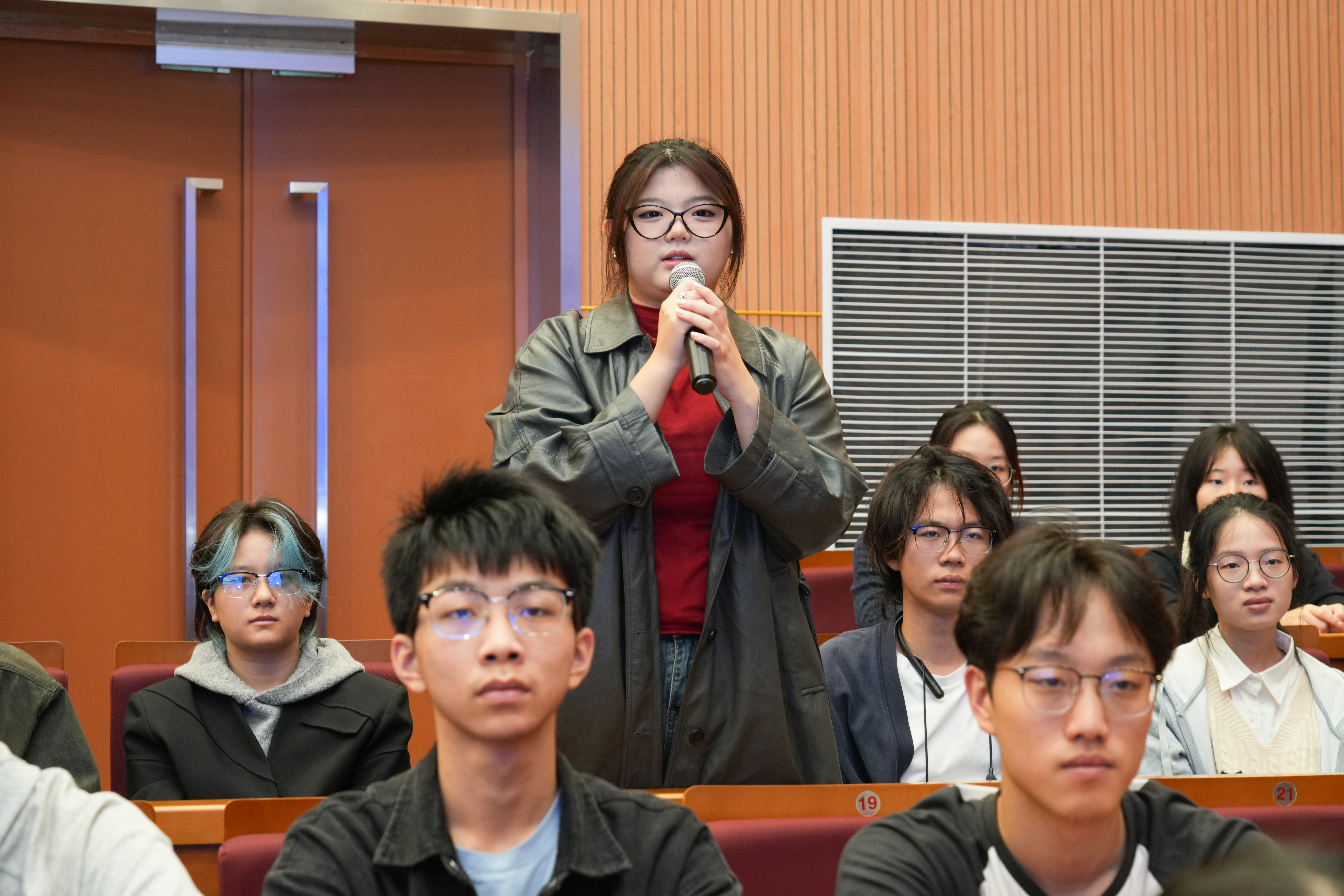 报告结束后,林郑月娥女士与现场师生开展了深入交流和讨论,学校师生踊跃进行提问,现场气氛活跃,掌声不断。交流过后,学校学生代表向林郑月娥女士赠送鲜花,表达诚挚感谢。